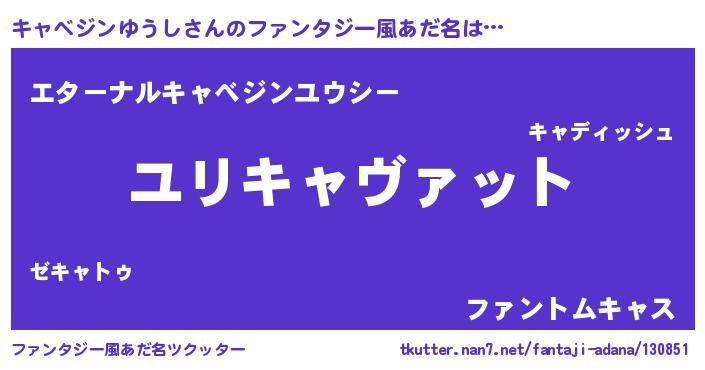 | 女子向けラノベタイトル風あだ名 | 『キャベジンゆうしの玉の輿計画!』 |