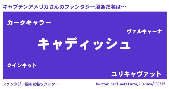 | 意味不明あだ名 | 『永久保存キャプテンアメリカ』 |