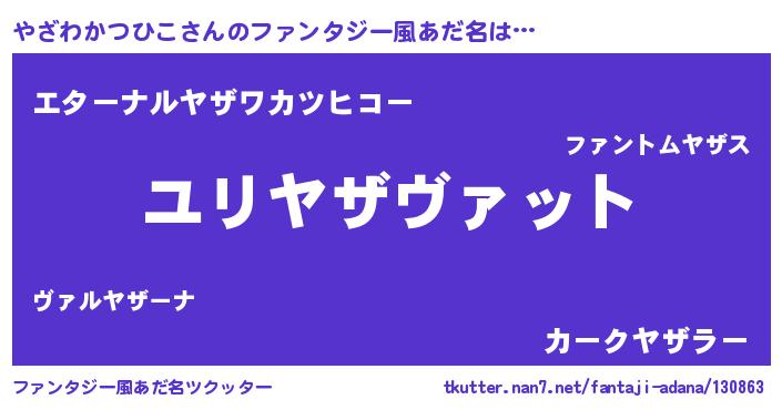| 男性向けラノベタイトル風あだ名 | 『転生したらやざわかつひこだった件』 |