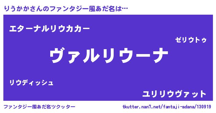 | ヒーロー風カッコイイあだ名 | 『仮面リウダー』『ウルトラりうかかマン』 |