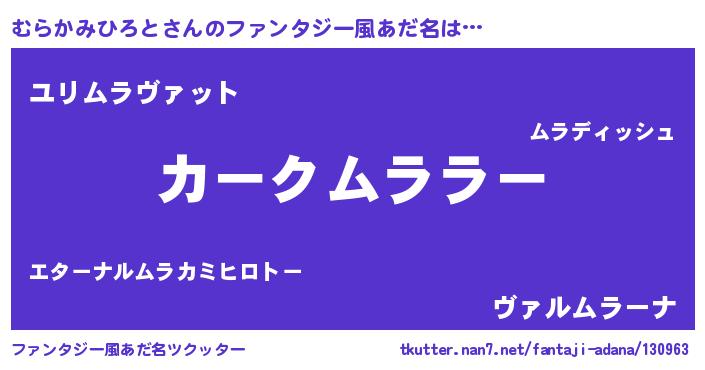 | ヒーロー風カッコイイあだ名 | 『仮面ムラダー』『ネオムラカミヒロト』 |