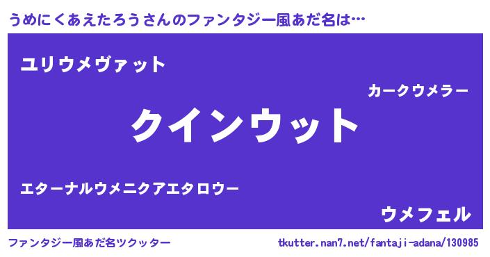 | 欧米人風あだ名 | 『ダニエルうめにくあえたろう』 |