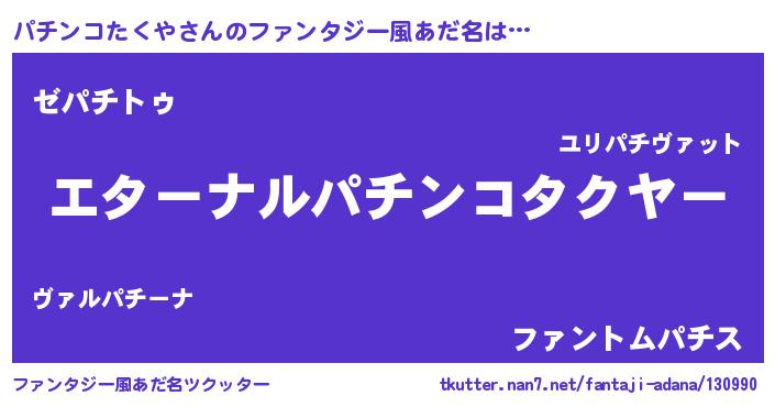 | 意味不明あだ名 | 『パチンコたくやフォーエバー』 |