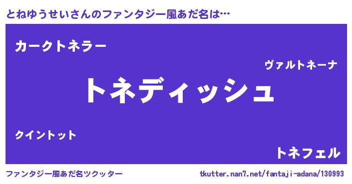 | ポケモン風あだ名 | 『ゼニトネ』『トネゴンZ』『トーネイ』 |