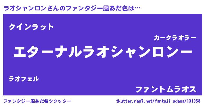| 女子向けラノベタイトル風あだ名 | 『ラオシャンロンの雑貨屋さん』 |