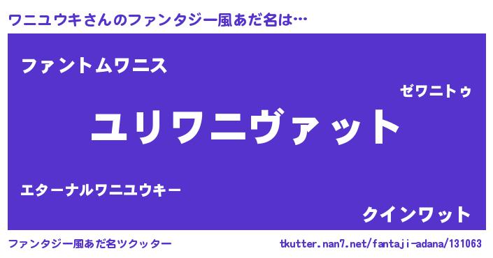 | 男性向けラノベタイトル風あだ名 | 『ワニユウキ~年齢イコール彼女いない歴の魔法使い~』 |