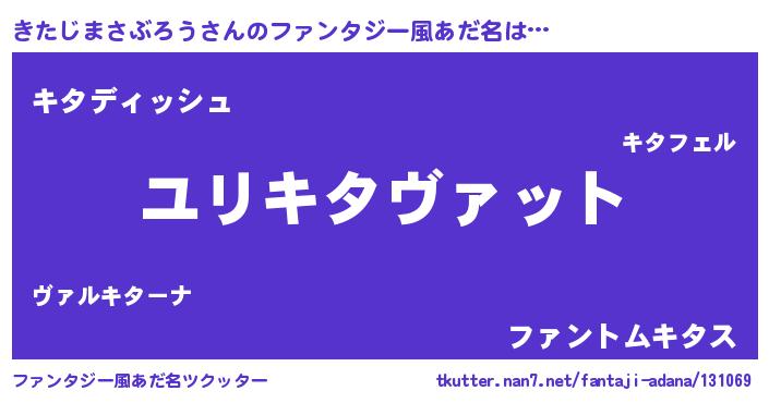 | 男性向けラノベタイトル風あだ名 | 『きたじまさぶろう~年齢イコール彼女いない歴の魔法使い~』 |
