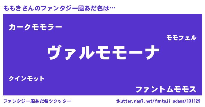 | 女子向けラノベタイトル風あだ名 | 『乙女ゲームの破滅フラグしかない悪役ももきに転生してしまった…』 |
