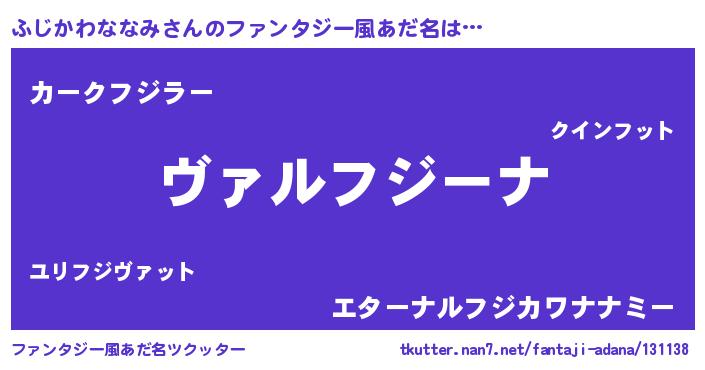 | 男性向けラノベタイトル風あだ名 | 『この素晴らしい世界にふじかわななみを!』 |