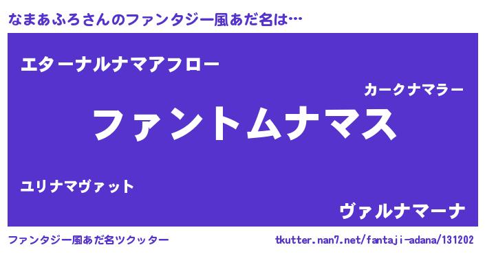 | ヒーロー風カッコイイあだ名 | 『幻影騎士ナマ』『仮面ナマダー』 |