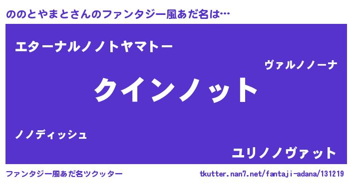 | 男性向けラノベタイトル風あだ名 | 『ノーゲーム・ノーノノトヤマト』 |
