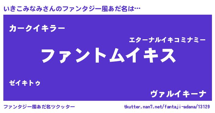 | 男性向けラノベタイトル風あだ名 | 『いきこみなみの嫁は女の子じゃないと思った?』 |