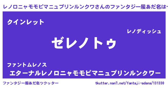 | 男性向けラノベタイトル風あだ名 | 『Re:レノロニャモモピマニュプリンルンクワから始める異世界生活』 |