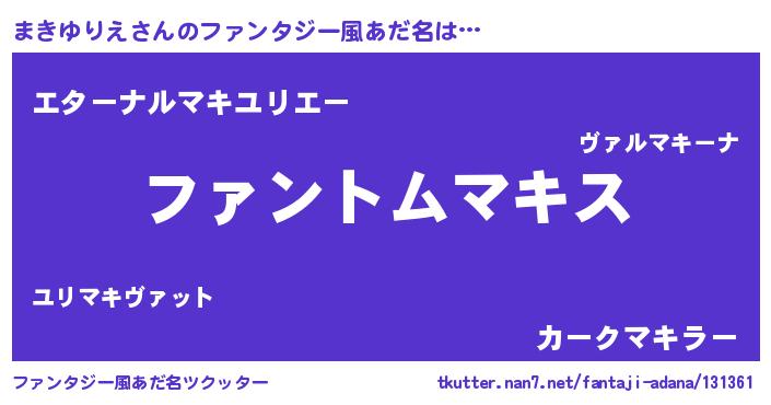 | ポケモン風あだ名 | 『ヒマキユリエ』『マキユダネ』 |