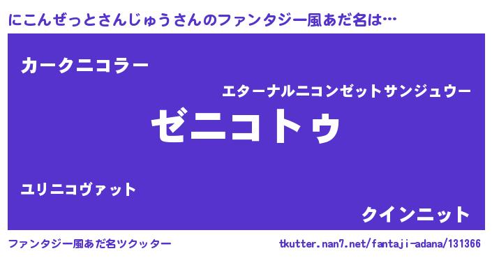 | 意味不明あだ名 | 『自称にこんぜっとさんじゅう』 |