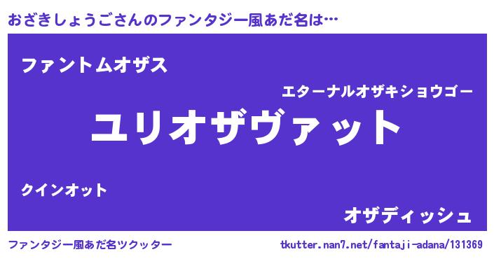 | 男性向けラノベタイトル風あだ名 | 『おざきしょうご~年齢イコール彼女いない歴の魔法使い~』 |