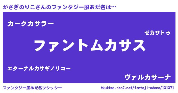 | 女子向けラノベタイトル風あだ名 | 『かさぎのりこ様がみてる』 |