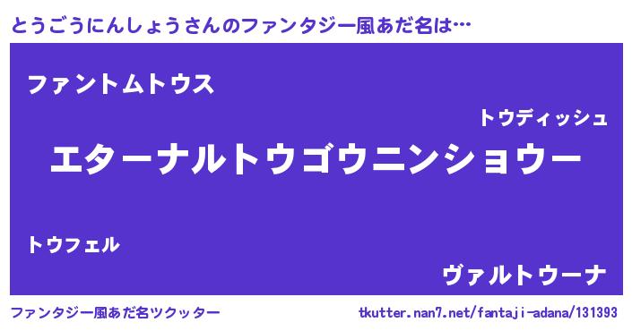| 意味不明あだ名 | 『とうごうにんしょうフォーエバー』 |