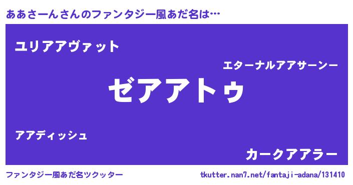 | 意味不明あだ名 | 『自称ああさーん』『永久保存ああさーん』 |