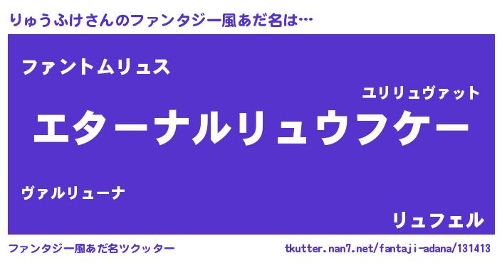 | 意味不明あだ名 | 『りゅうふけフォーエバー』 |