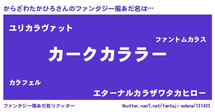 | 男性向けラノベタイトル風あだ名 | 『うちのからざわたかひろが世界を掌握している!』 |
