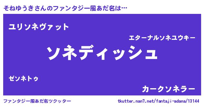 | 男性向けラノベタイトル風あだ名 | 『そねゆうきという概念が存在しない退屈な世界 』 |