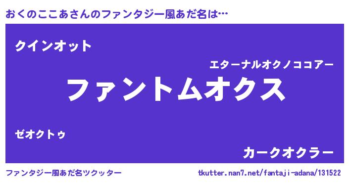| 意味不明あだ名 | 『とにかく怪しいおくのここあ』 |