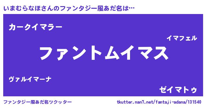 | ヒーロー風カッコイイあだ名 | 『暗黒騎士イマ』『スーパーイマムラナホ』 |