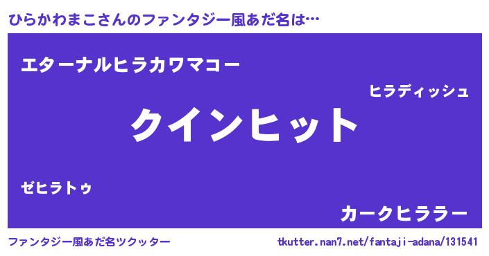 | ヒーロー風カッコイイあだ名 | 『慈愛の使者ひらかわまこ』 |