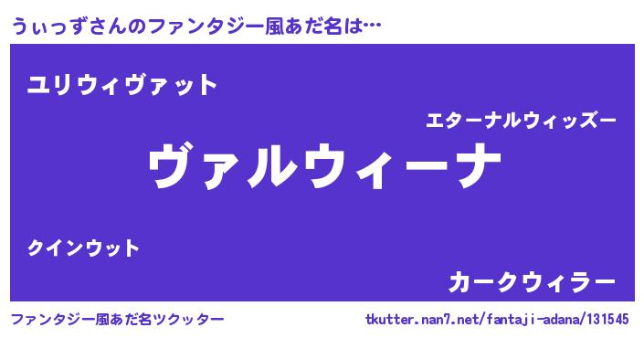 | ヒーロー風カッコイイあだ名 | 『仮面ウィダー』『ウルトラうぃっずマン』 |