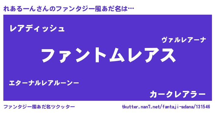| 男性向けラノベタイトル風あだ名 | 『れあるーんに滅ぼされるだけの簡単なお仕事です』 |