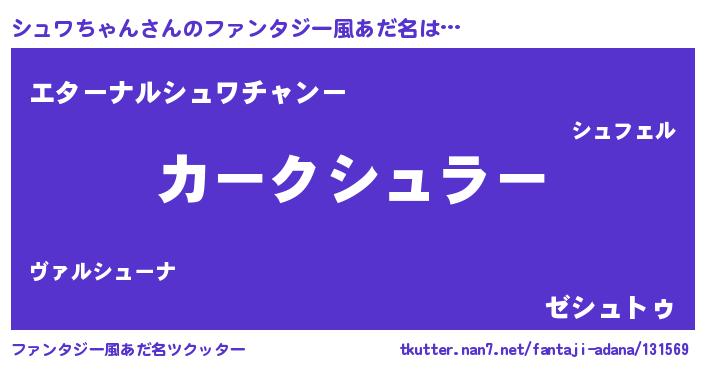 | 男性向けラノベタイトル風あだ名 | 『緋弾のシュワチャン』 |