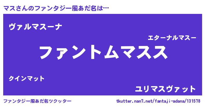 | ヒーロー風カッコイイあだ名 | 『天弓騎士マス』『仮面マスダー』 |