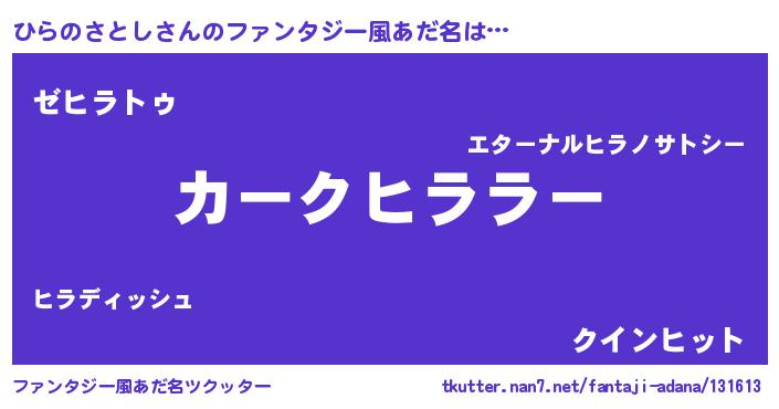 | ヒーロー風カッコイイあだ名 | 『サイバー戦士ヒラノサトシ』 |