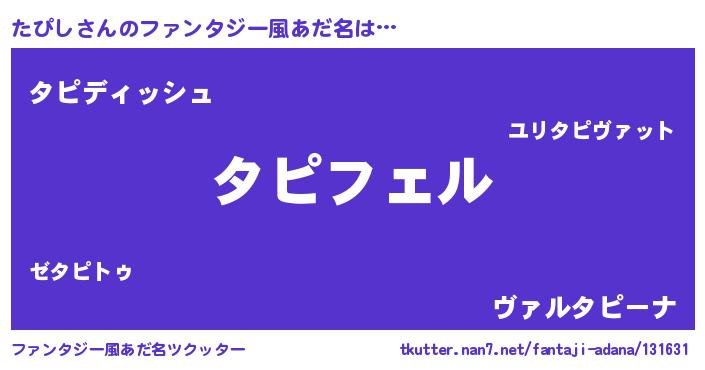 | 意味不明あだ名 | 『ペロリンたぴし』『永久保存たぴし』 |