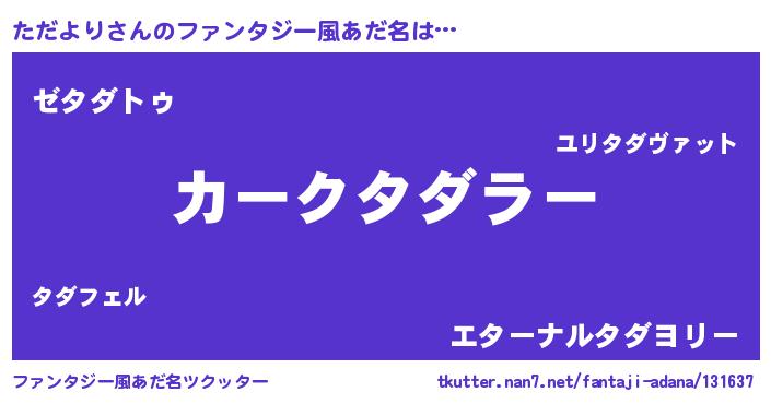 | 男性向けラノベタイトル風あだ名 | 『緋弾のタダヨリ』 |