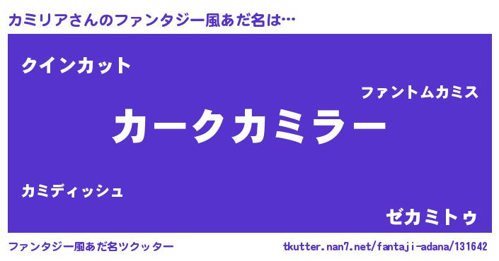 | ヒーロー風カッコイイあだ名 | 『友情の使者カミリア』『幻影騎士カミ』 |