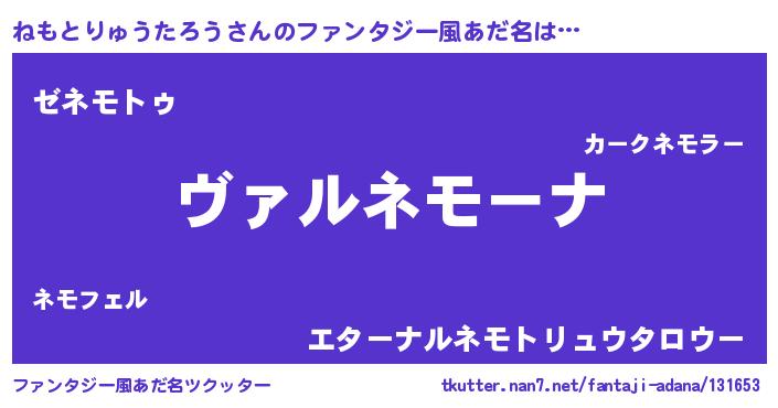 | 意味不明あだ名 | 『住所不定無職ねもとりゅうたろう(65歳)』 |