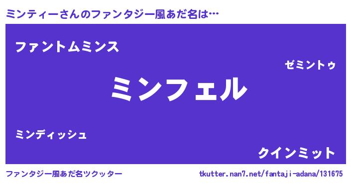 | 意味不明あだ名 | 『ペロリンミンティー』『自称ミンティー』 |
