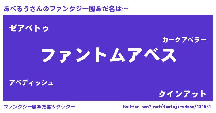 | 女子向けラノベタイトル風あだ名 | 『あべるうは平凡を望む』 |