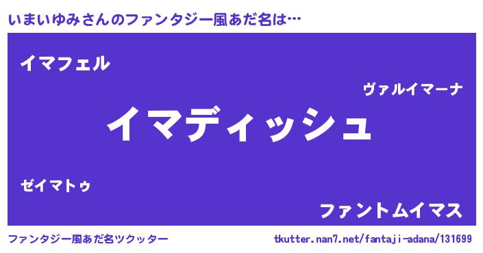 | 意味不明あだ名 | 『永久保存いまいゆみ』『自称いまいゆみ』 |