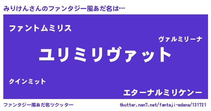 | 男性向けラノベタイトル風あだ名 | 『ミリケンスレイヤー』 |