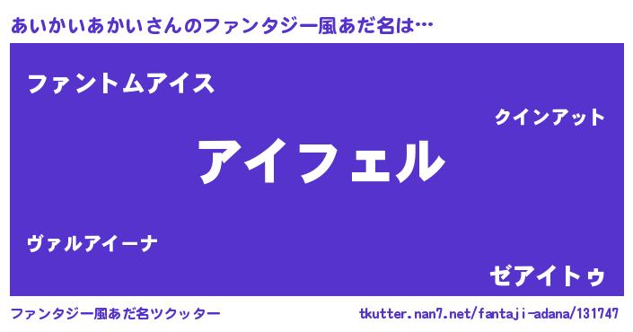 | 男性向けラノベタイトル風あだ名 | 『あいかいあかいの憂鬱』 |