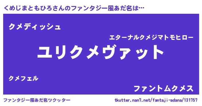 | 可愛いあだ名 | 『くめぷりん』『くめじまともひろママ』 |