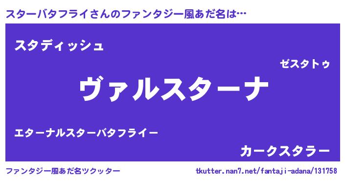 | ことわざ | 三つ子の魂100まで『スターバタフライの魂100まで』 |