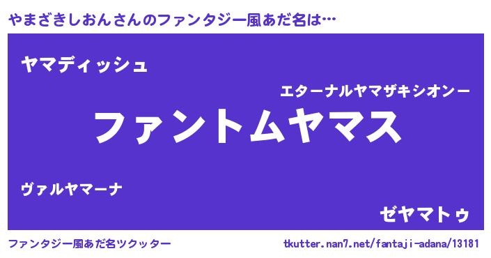 | 胡散臭い通販商品みたいなあだ名 | 『信頼と実績のサプリメント…その名も「やまざきしおん」』 |