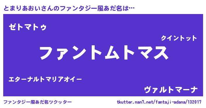 | 男性向けラノベタイトル風あだ名 | 『とまりあおいの嫁は女の子じゃないと思った?』 |