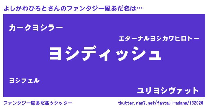 | 男性向けラノベタイトル風あだ名 | 『よしかわひろとという概念が存在しない退屈な世界 』 |