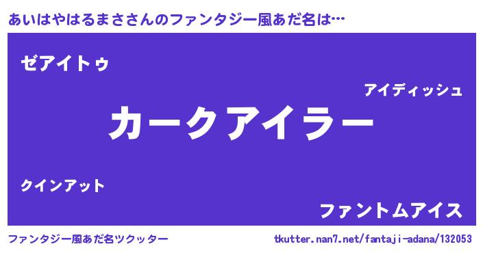 | 意味不明あだ名 | 『自称あいはやはるまさ』 |