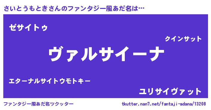 | 男性向けラノベタイトル風あだ名 | 『魔弾の王とさいとうもとき』 |
